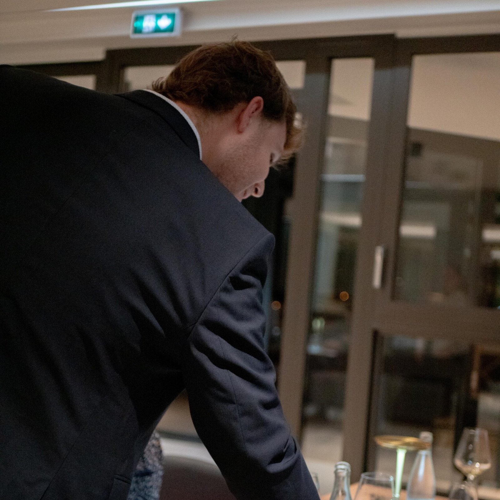 En salle, notre équipe vous accueille avec attention et bienveillance, afin de vous offrir une expérience chaleureuse, fluide et élégante du début à la fin du repas.